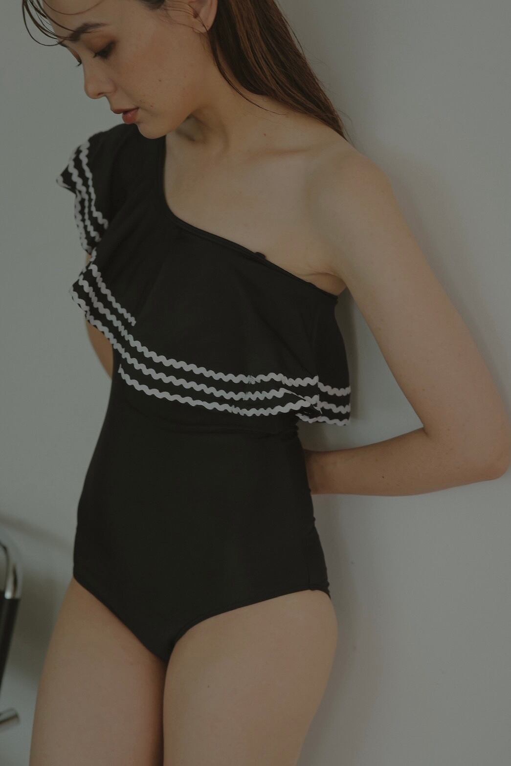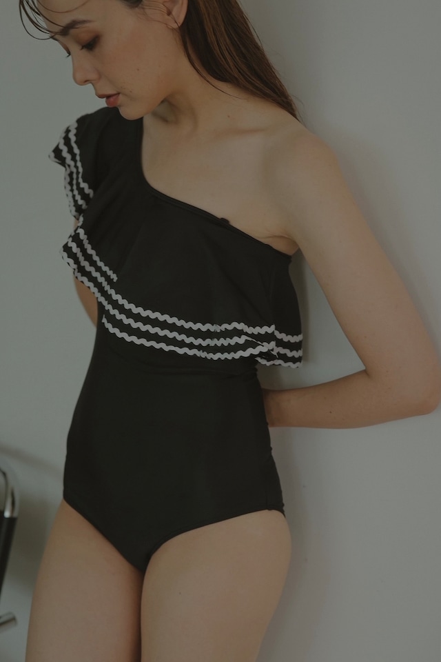 ワンショルダーのデザインが大人可愛い印象を与える一方、着心地も抜群で、リラックスした海やプールサイドの時間を演出してくれます。