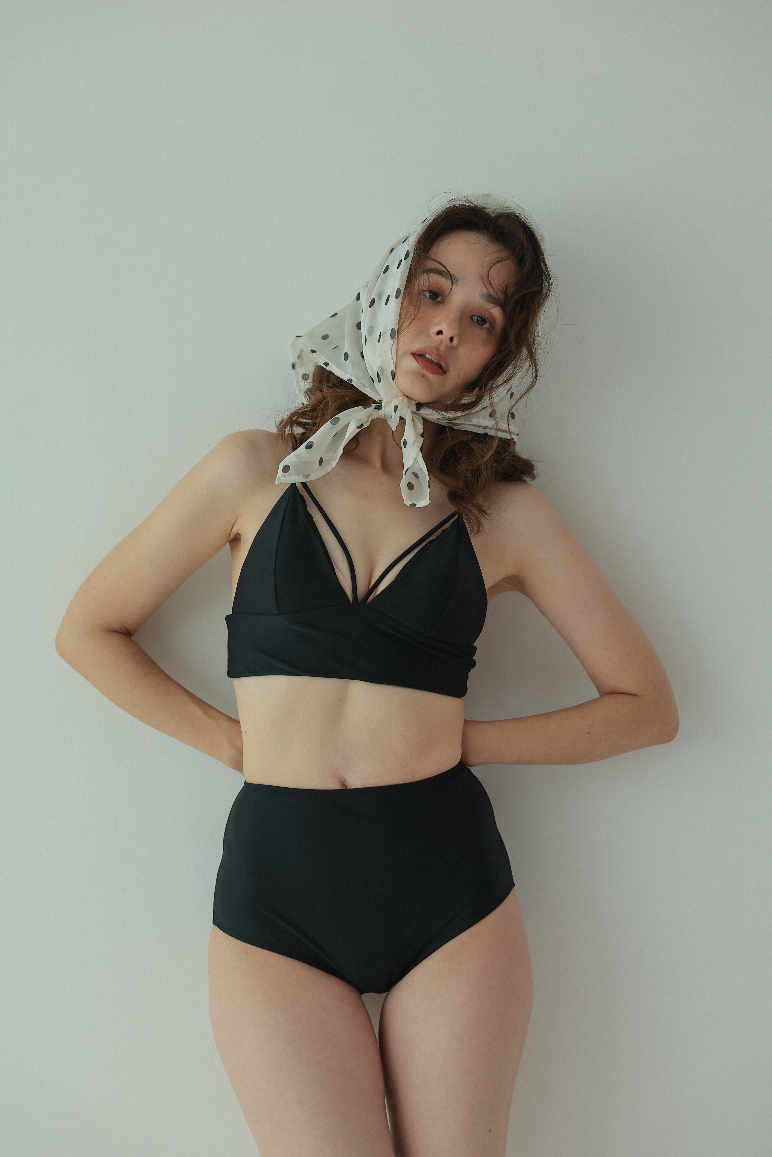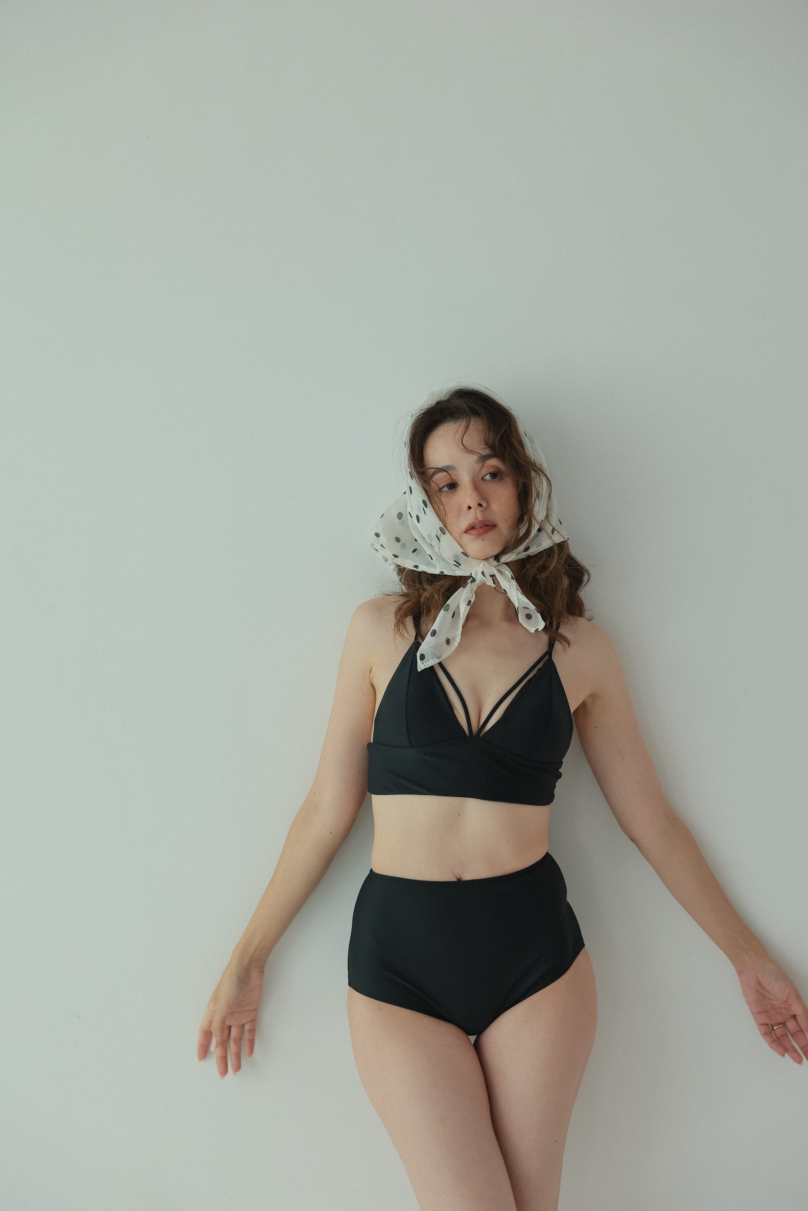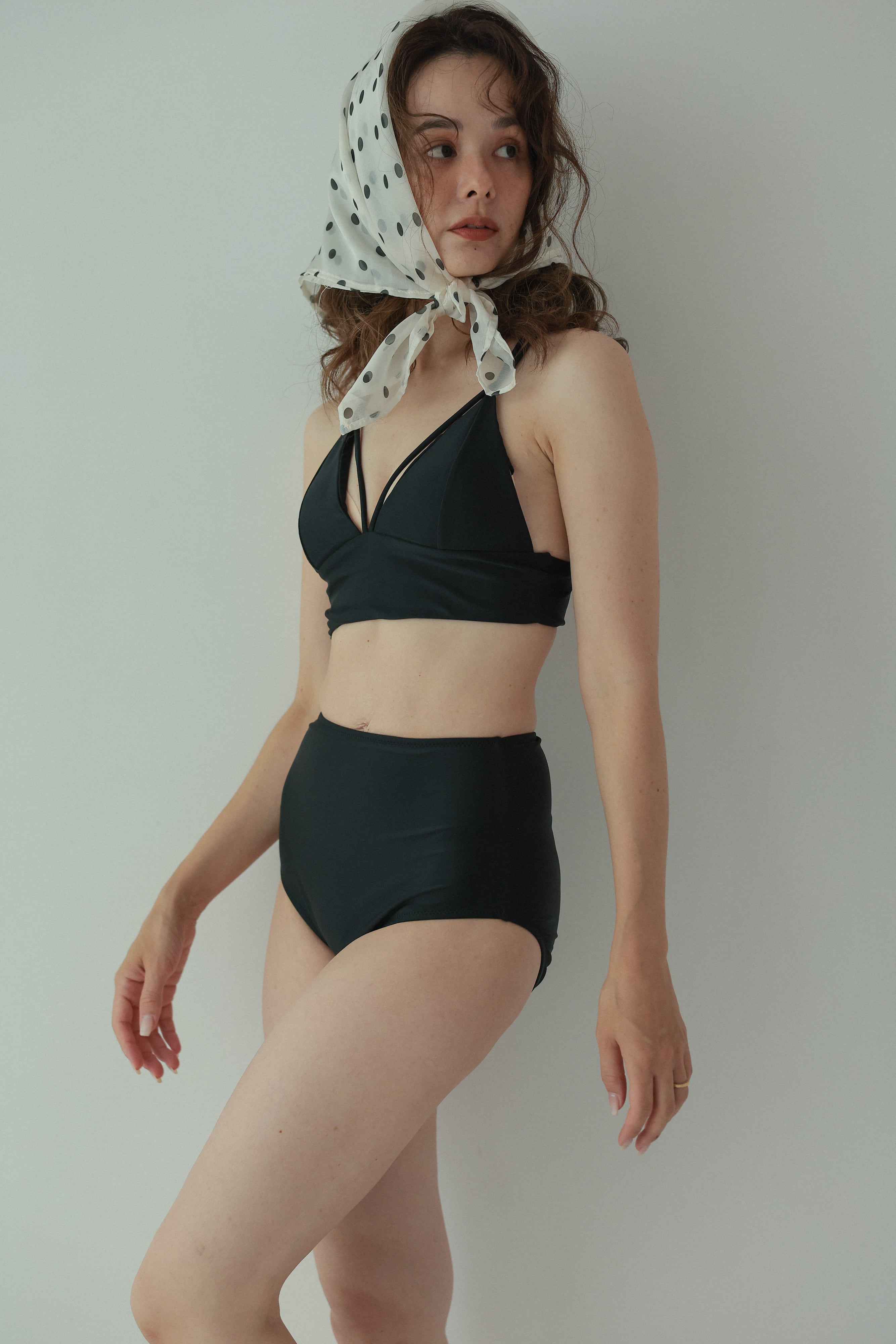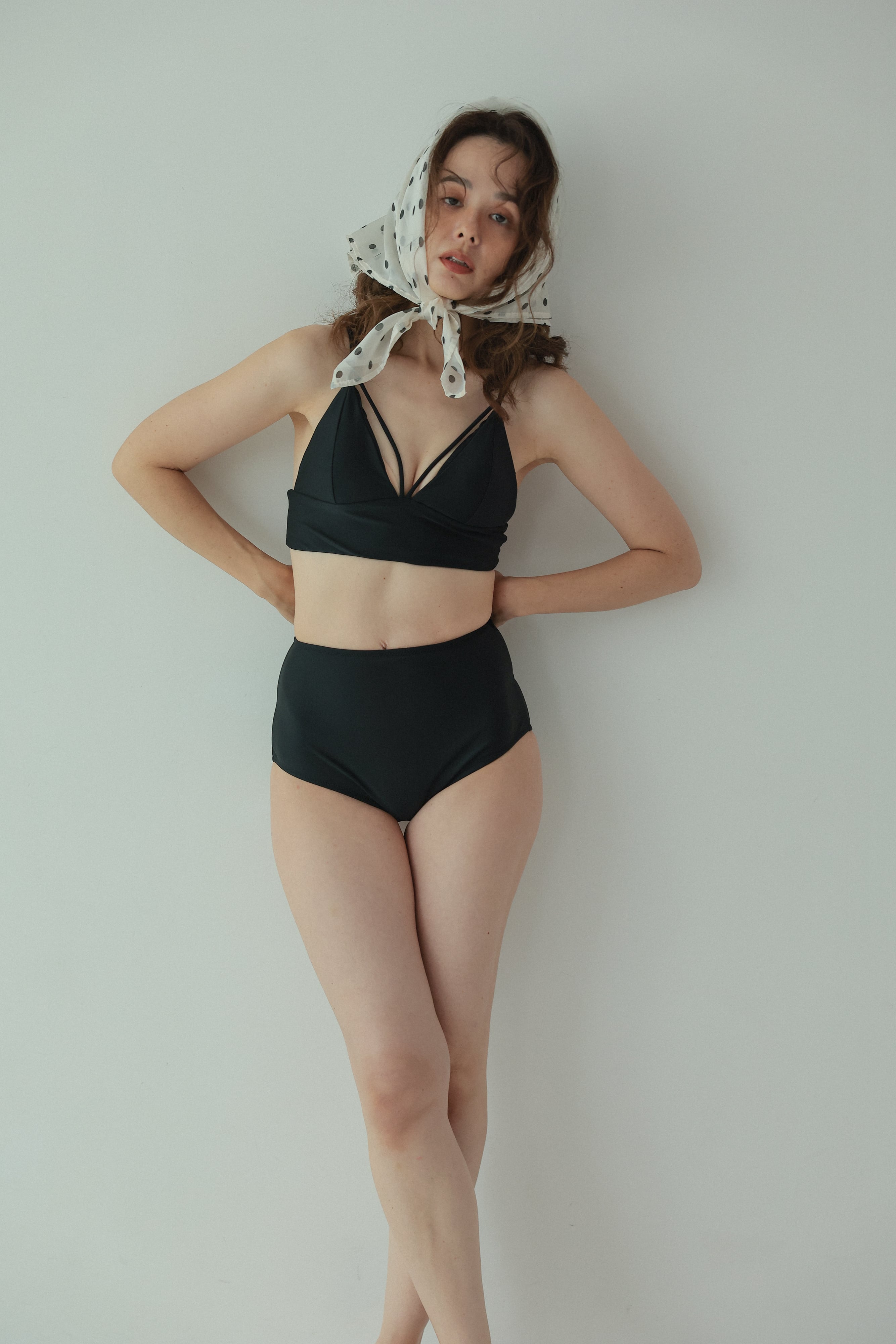 ショーツは細長効果抜群のハイウエストデザインでウエストやヒップ周りもしっかりカバーされてます。